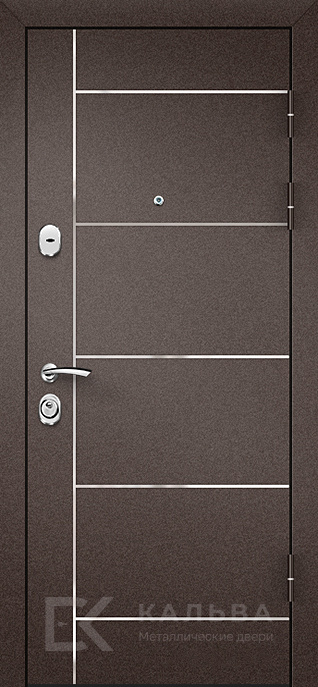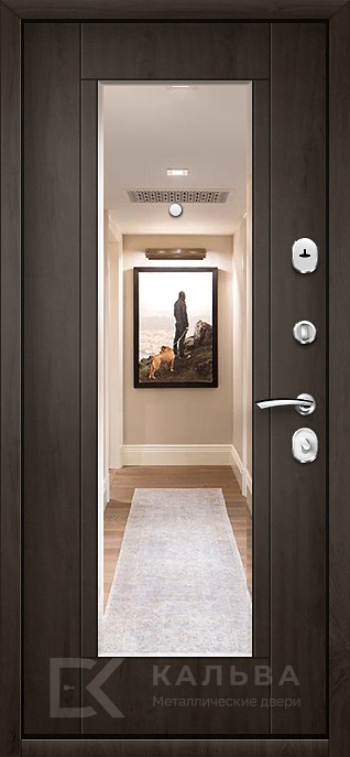 Фото «Входная дверь шоколадная с горизонтальными вставками и зеркалом №75»