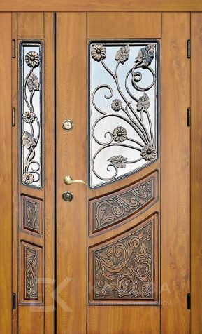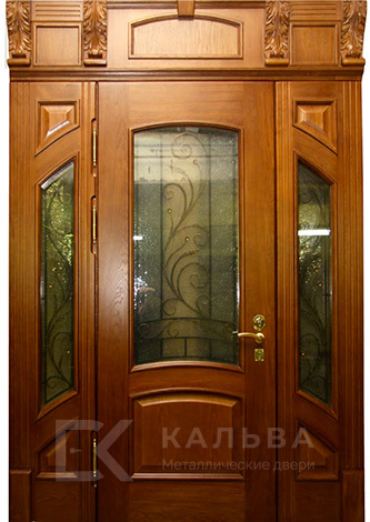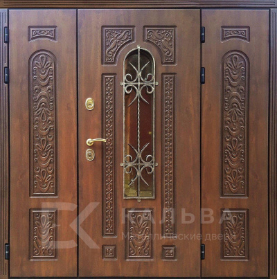 Фото «Стальная дверь-портал орех с радиусным декором для частного дома №97»